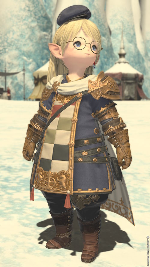 エウレカでは専用装備の都合上、装備を共用せず更新もしない別のギアセットを作ることになったので「ミラージュプレートの枠を圧迫せずタンク5枚目のミラプリ作れるじゃん!」と喜びながらかねてより使いたかったラバナスタ胴を起点に考えたもの。正面の模様が可愛い。